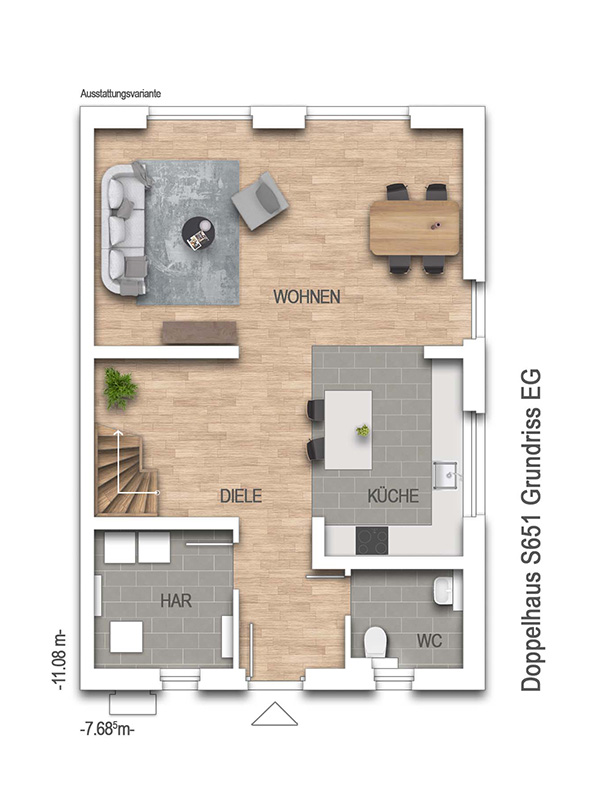 Oder ziehen Sie den Gedanken eines Einfamilienhauses vor? Dann ist z. B. unser Reihenhaus S651 genau richtig für Sie! Unsere Reihenhäuser im Einfamilienhaus-Stil bietet Ihnen eine interessante Möglichkeit, das Grundprinzip des Reihenhauses zu nutzen ohne auf viel Platz und Komfort verzichten zu müssen.
