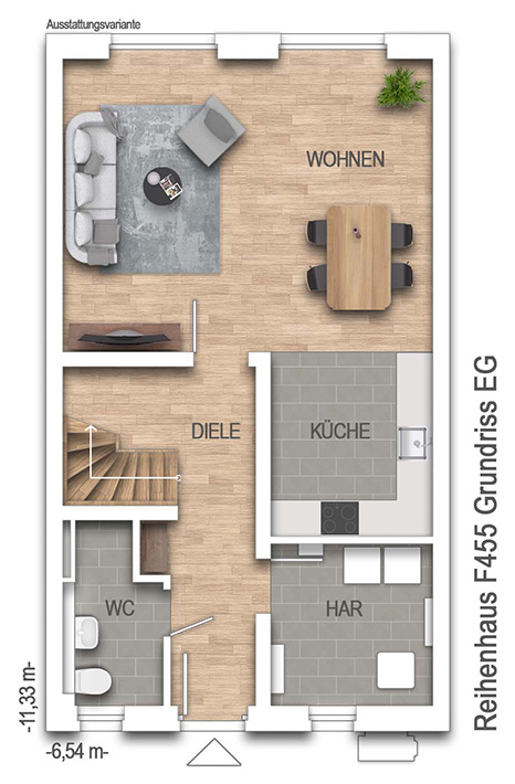 - Haustyp:Reihenmittelhaus F455