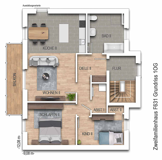 Ihre Liebsten immer in Ihrer Nähe! Mit dem attraktiven Zweifamilienhaus 631 ist das jetzt möglich und damit Ihnen keine unerwünschten Heizkörper die schöne Sicht auf Ihre sorgfältig ausgewählte Inneneinrichtung verderben, gibt es bei Heinz von Heiden die Fußbodenheizung in der Standardausstattung inklusive. Die Abbildung zeigt eine Ausstattungsvariante.