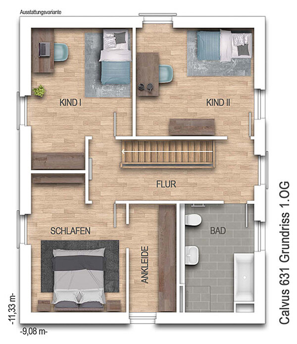 Sie behalten immer den Durchblick? Beim Calvus 631 blicken Sie schon am Eingang wieder hinaus in den eigenen Garten. Dank der offenen Grundrissgestaltung ist es immer hell und freundlich. Die innere Wohnfläche verteilt sich auf 160 m² und zwei ganzen Etagen. Top modern, top Qualität, top Bauherrensicherheit. Mit uns und vielen Markenpartnern bauen Sie mehr als ein Massivhaus - nämlich Ihr Traumhaus, bei dem Sie jedes Detail nach Ihren Wünschen planen, von der Türklinke zum Dachziegel. Die Abbildung zeigt eine Ausstattungsvariante.