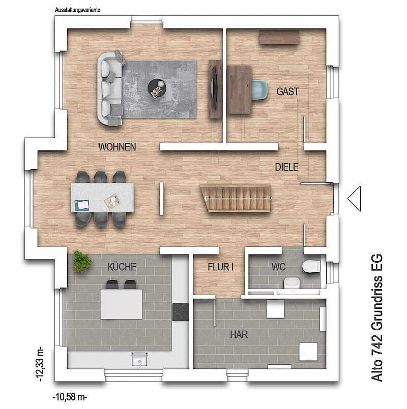 Fertighaus oder Massivhaus? Die Baufamilie musste nicht lange überlegen. Ihr Herz schlug fürs Mauerwerk. Stein auf Stein, so soll es sein! An der massiven Bauweise schätzen Rebekka und Jens die Robustheit, das gesunde Raumklima sowie den höheren Werterhalt im Falle eines Wiederverkaufs. „Wie groß soll unser Haus sein?“, fragten sie sich und beschlossen: anderthalb Geschosse. Im Erdgeschoss wünschte sich das Paar ein Gästezimmer bzw. Büro sowie einen großen, offenen Wohn-Koch-Ess-Bereich. Im Dachgeschoss sollte genügend Platz für die beiden sowie die kleine Tochter Flora vorhanden sein. Das klassische Einfamilienhaus „Alto 742“ von Heinz von Heiden war mit entsprechenden Anpassungen geradezu ideal für die Bedürfnisse der Familie, daher wählte sie diesen Haustyp. Nach sieben Monaten Bauzeit war das neue Zuhause schon bezugsfertig.
