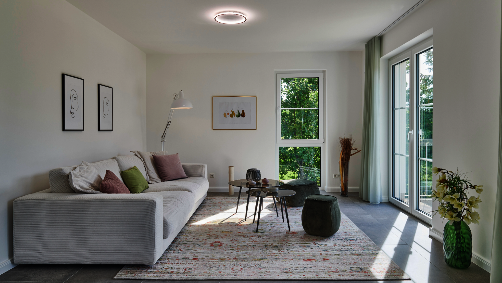 Das 175 m² große Eigenheim verteilt sich auf zwei Vollgeschosse. Der quadratische Grundriss ist typisch für eine Stadtvilla und bietet insgesamt fünf Zimmer. Genügend Platz und viel Wohnkomfort machen es zu einem Wohlfühlort für die ganze Familie.