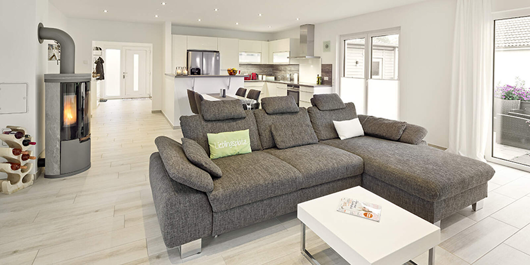 Dieser harmonische Eindruck von außen setzt sich innen fort. Für uns direkt nach dem Klingeln: Mit ihrer sympathischen Ausstrahlung empfingen uns die Bauherren äußerst herzlich zu unserem Hausbesuch.
