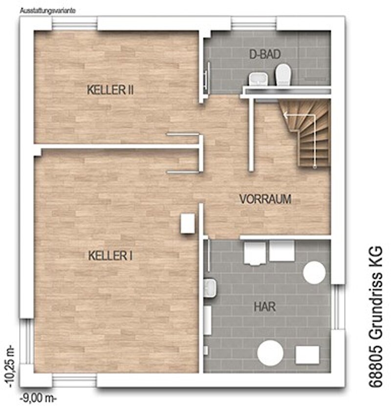 Den letzten Schliff bei der Grundrissplanung gibt das Kellergeschoss, denn dort kann in den zwei Abstellräumen einiges verstaut und gelagert werde. Und falls viel Besuch im Haus ist, können die Gäste praktischerweise auf ein weiteres Duschbad im Kellergeschoss ausweichen.
