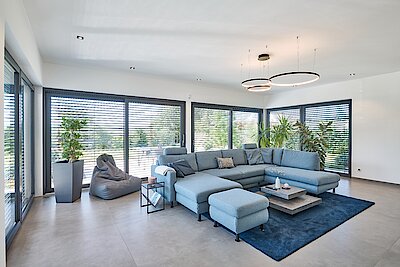 Dieses zweigeschossige Einfamilienhaus mit einer Wohnfläche von fast 280m² vereint modernes Design mit großzügigem Raumangebot und luxuriöser Ausstattung. Als Grundlage diente das Calvus 630, welches lediglich von der Größe her angepasst wurde. Bei der Innenausstattung hatte der Bauherr besondere Vorstellungen, die man in allen Bereichen deutlich erkennen kann.