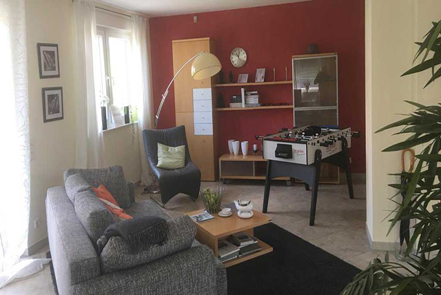 - Wohnbereich mit Küche in L-Form